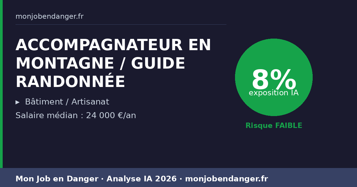 ACCOMPAGNATEUR EN MONTAGNE / GUIDE RANDONNÉE et IA en 2026 : 8% d’exposition — ce que ça change pour vous