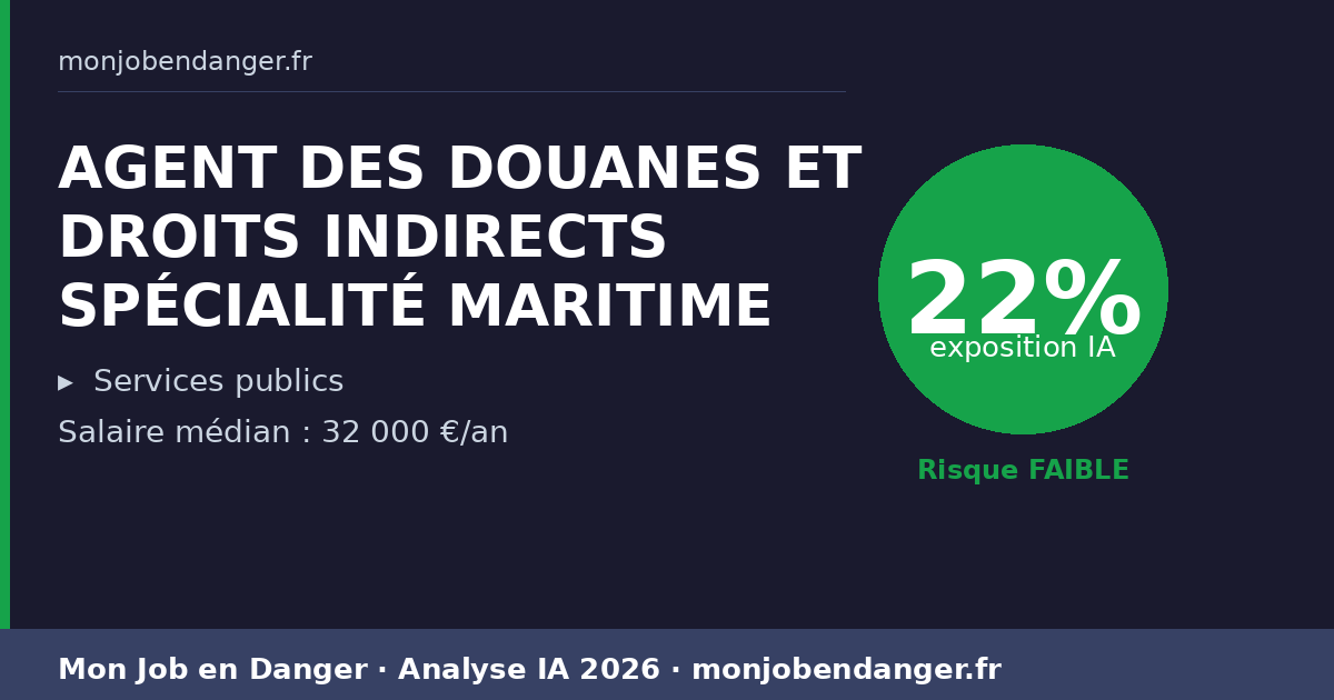 AGENT DES DOUANES ET DROITS INDIRECTS SPÉCIALITÉ MARITIME et IA en 2026 : 22% d’exposition — ce que ça change pour vous