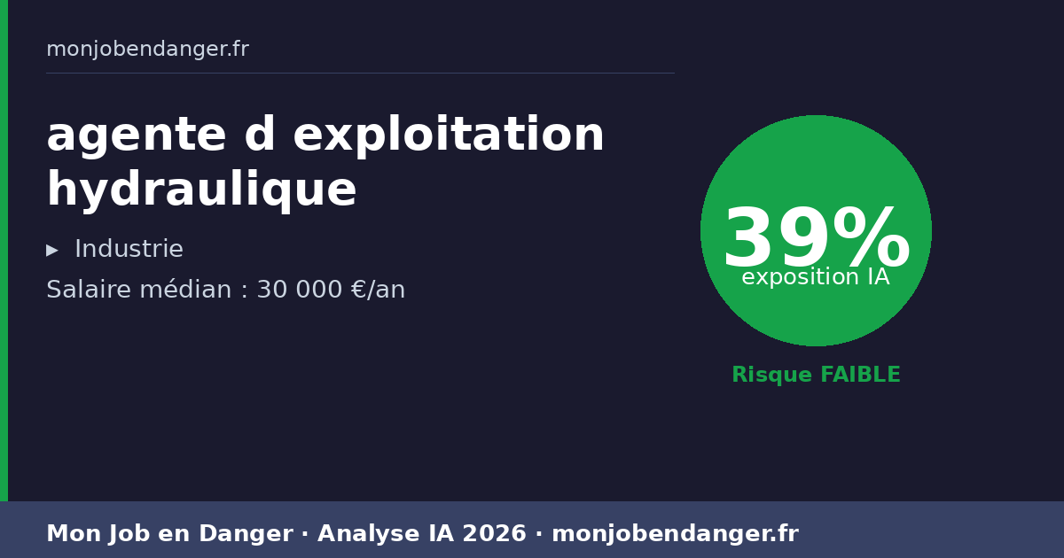 agente d exploitation hydraulique et IA en 2026 : 39% d’exposition — ce que ça change pour vous