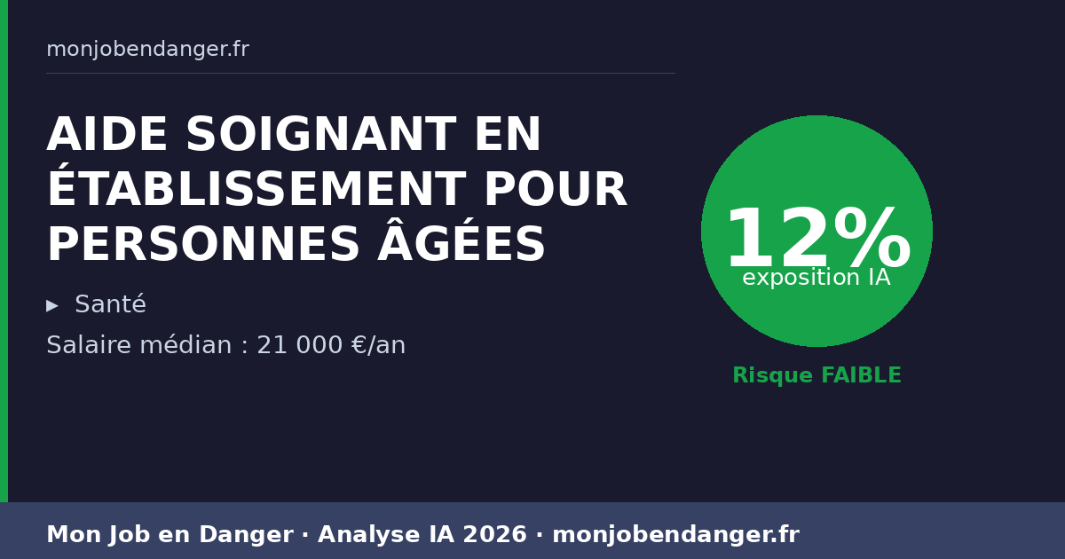 Où ce métier est exposé — et où il résiste : AIDE SOIGNANT EN ÉTABLISSEMENT POUR PERSONNES ÂGÉES DÉPENDANTES ?
