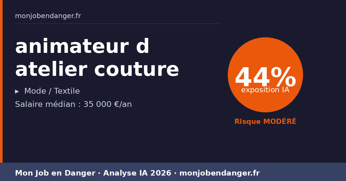 animateur d atelier couture et IA en 2026 : 44% d’exposition — ce que ça change pour vous