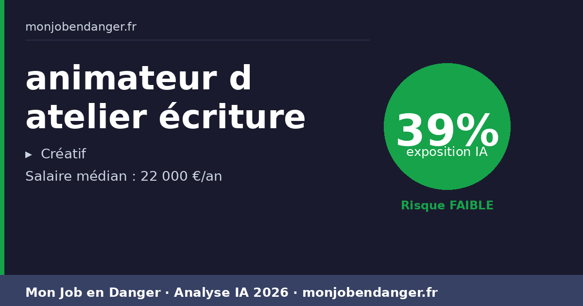 animateur d atelier écriture et IA en 2026 : 39% d’exposition — ce que ça change pour vous