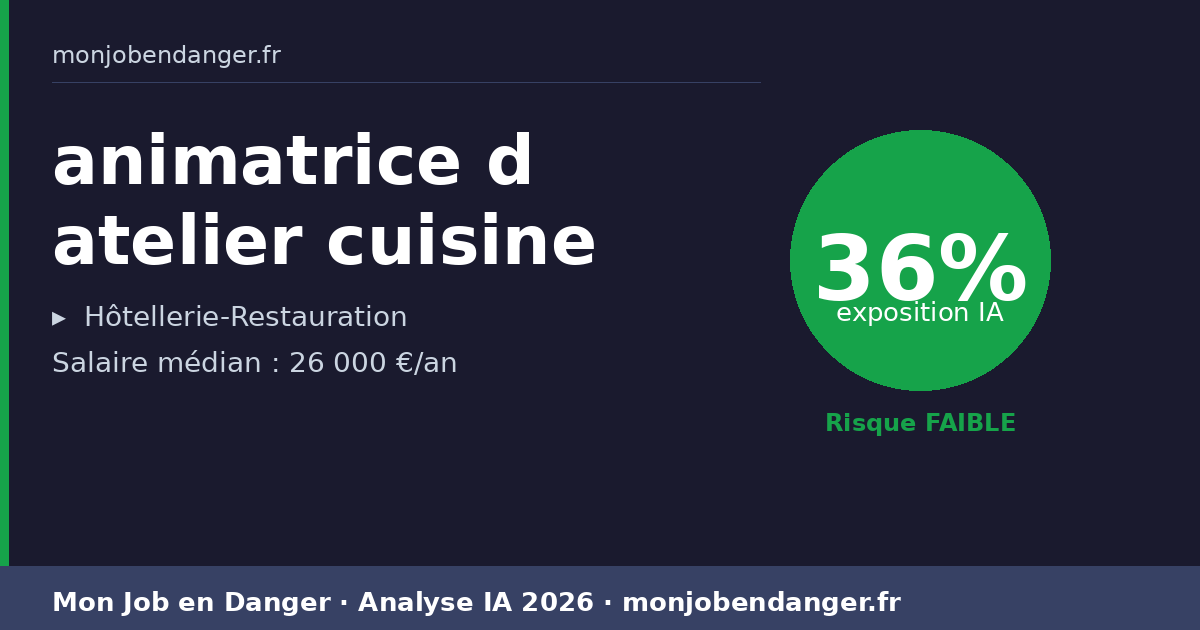 animatrice d atelier cuisine et IA en 2026 : 36% d’exposition — ce que ça change pour vous