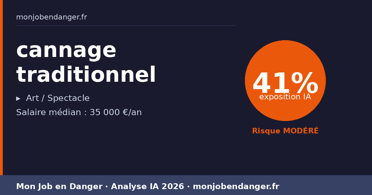 À 41% d’exposition, les cannages traditionnel vivent une mutation progressive. Certaines tâches seront assistées par l’IA, d’autres resteront pleinement humaines. Votre meilleure stratégie : adopter les outils IA pour amplifier votre productivité.