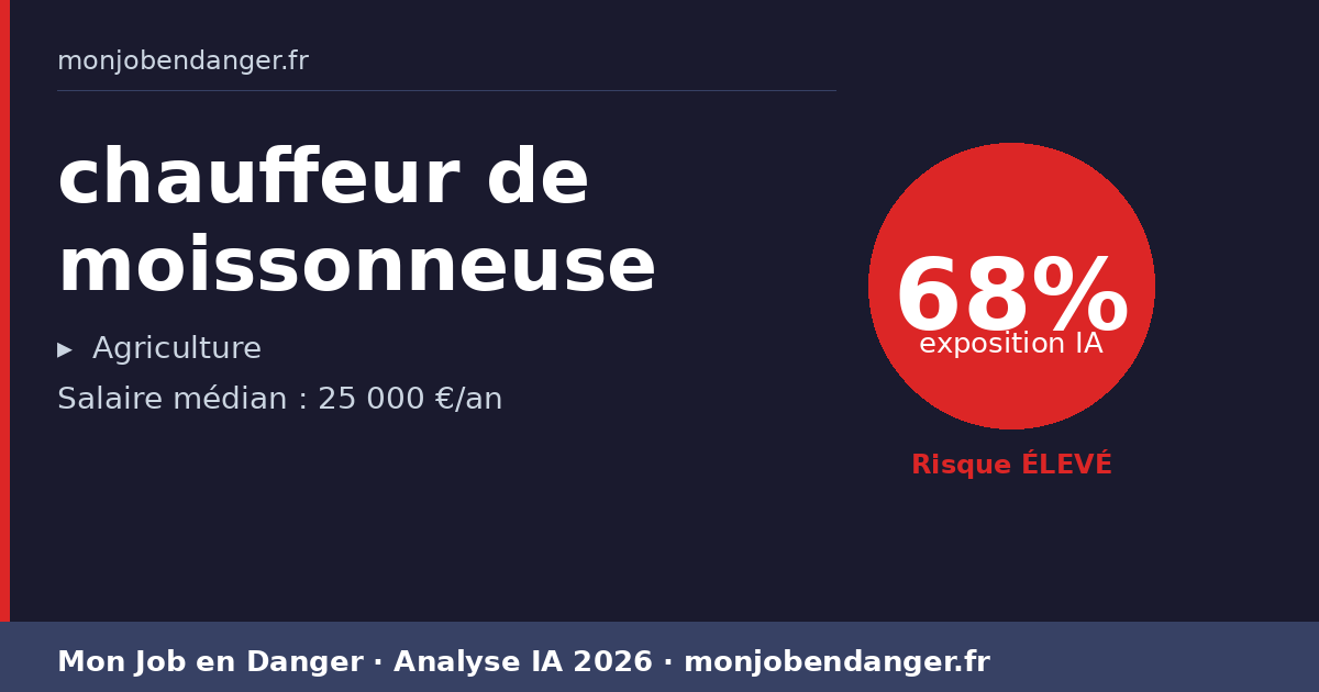 chauffeur de moissonneuse et IA en 2026 : 68% d’exposition — ce que ça change pour vous
