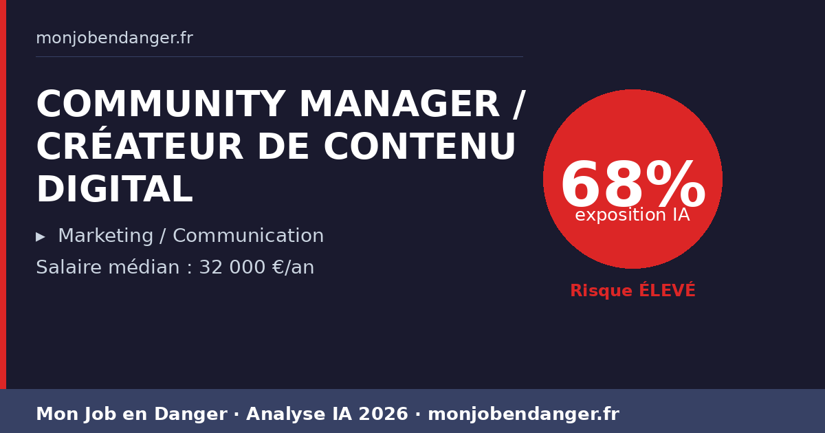 COMMUNITY MANAGER / CRÉATEUR DE CONTENU DIGITAL et IA en 2026 : 68% d’exposition — ce que ça change pour vous