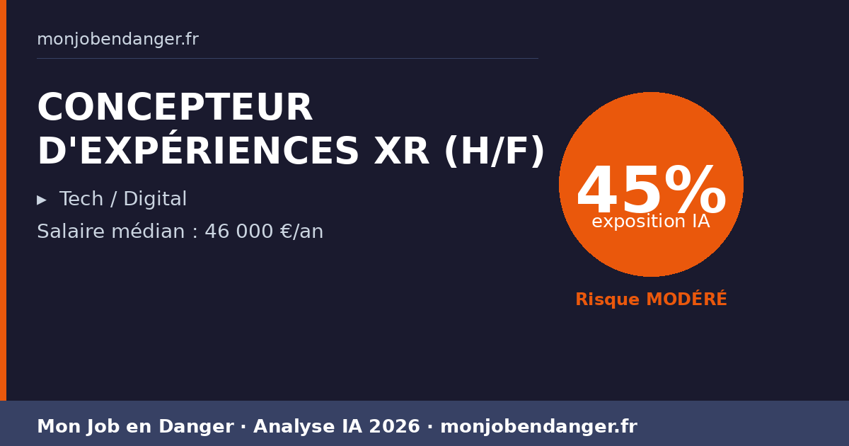 CONCEPTEUR D'EXPÉRIENCES XR (H/F) et IA en 2026 : 45% d’exposition — ce que ça change pour vous