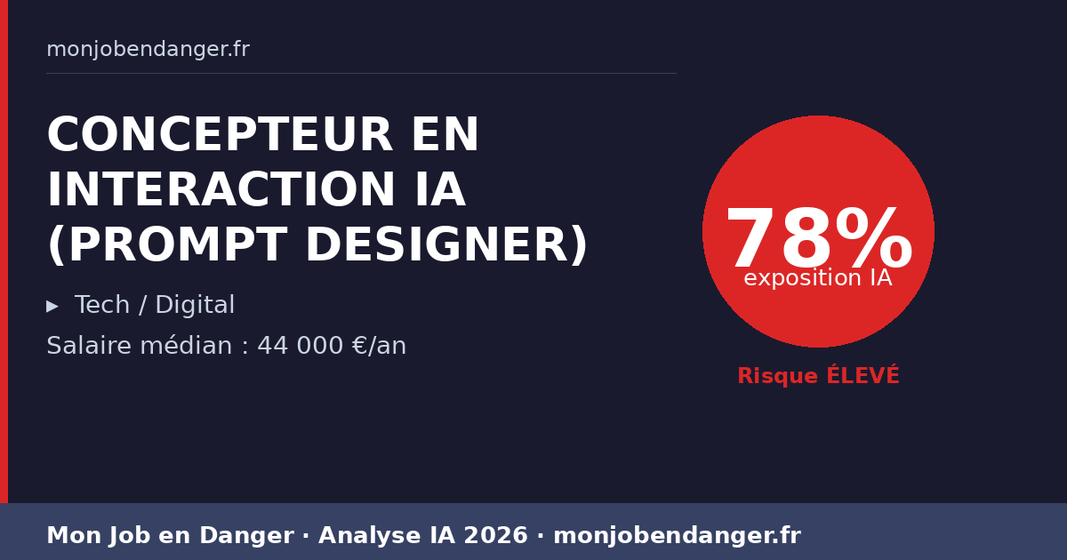 CONCEPTEUR EN INTERACTION IA (PROMPT DESIGNER) et IA en 2026 : 78% d’exposition — ce que ça change pour vous