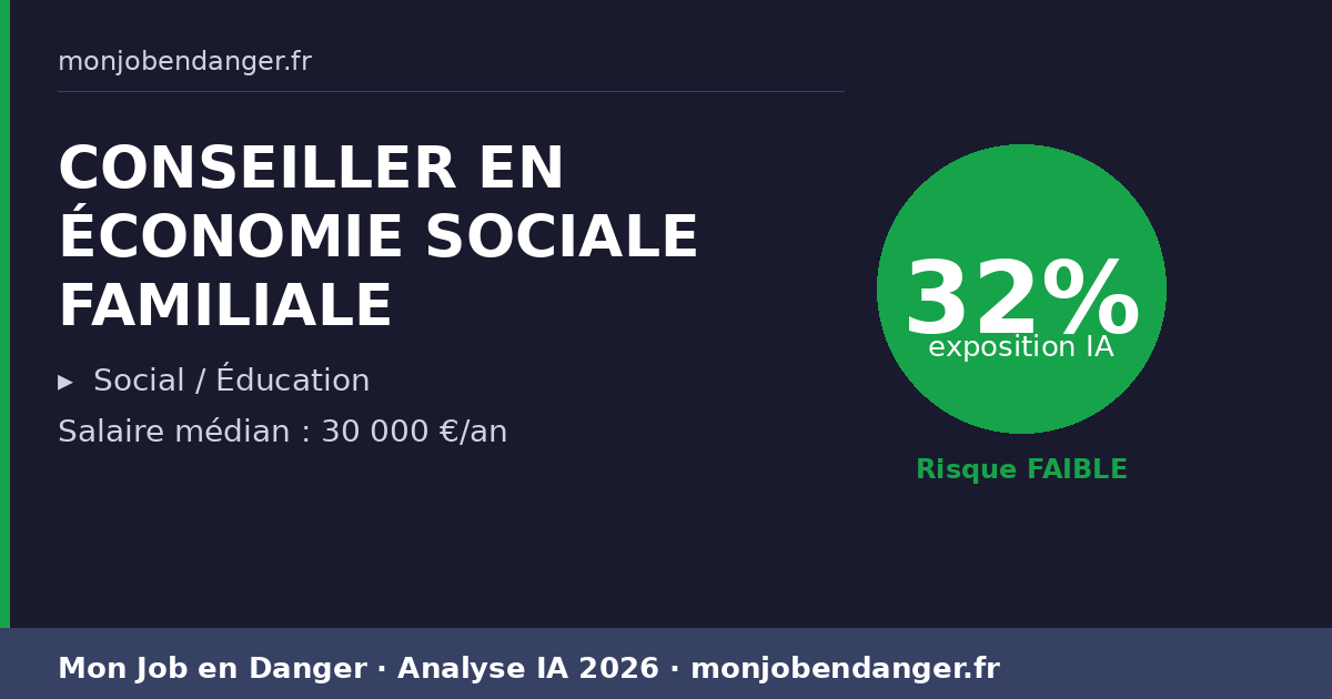 CONSEILLER EN ÉCONOMIE SOCIALE FAMILIALE et IA en 2026 : 32% d’exposition — ce que ça change pour vous