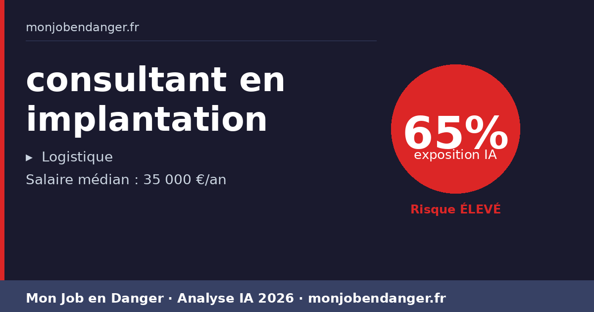 Salaire médian actuel : 35 000 €. Réaliste. Les consultant en implantation qui adoptent les outils IA en premier gagnent en productivité et peuvent négocier en position de force.
