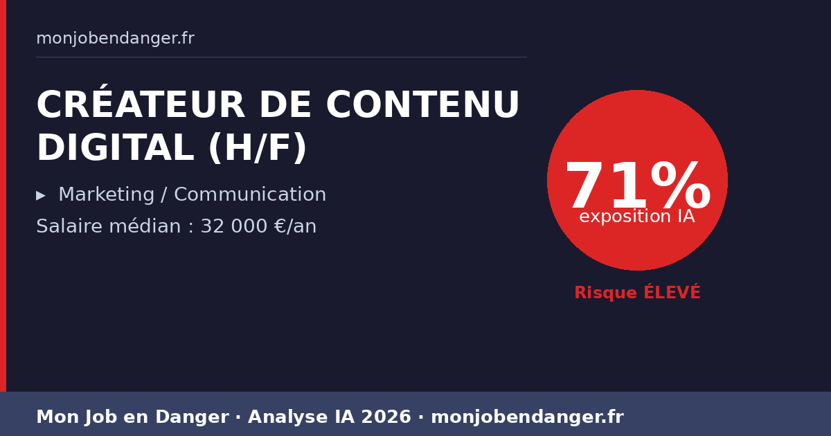 CRÉATEUR DE CONTENU DIGITAL (H/F) et IA en 2026 : 71% d’exposition — ce que ça change pour vous