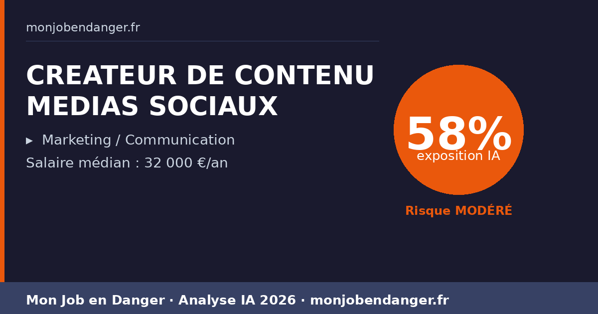 CREATEUR DE CONTENU MEDIAS SOCIAUX et IA en 2026 : 58% d’exposition — ce que ça change pour vous
