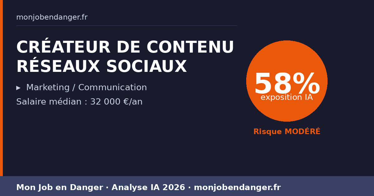 CRÉATEUR DE CONTENU RÉSEAUX SOCIAUX et IA en 2026 : 58% d’exposition — ce que ça change pour vous