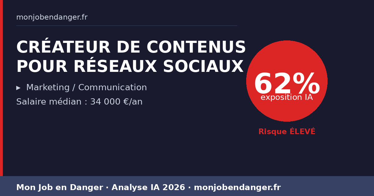 CRÉATEUR DE CONTENUS POUR RÉSEAUX SOCIAUX et IA en 2026 : 62% d’exposition — ce que ça change pour vous