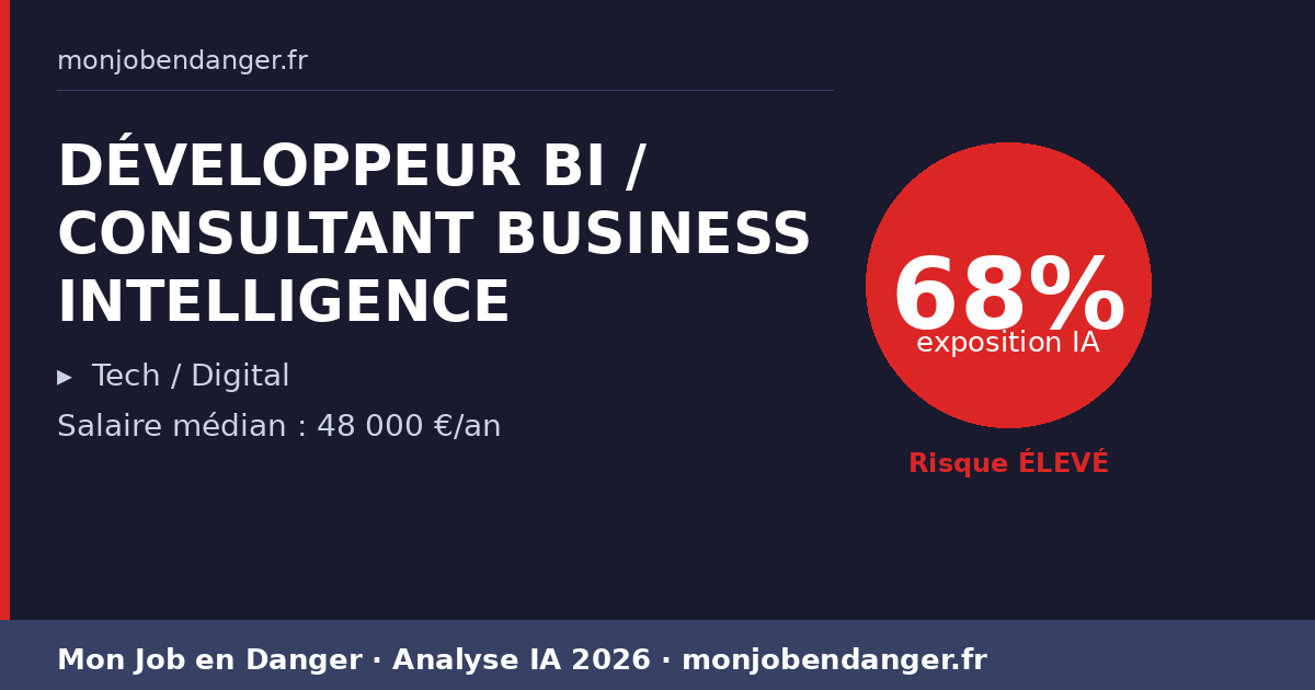 DÉVELOPPEUR BI / CONSULTANT BUSINESS INTELLIGENCE et IA en 2026 : 68% d’exposition — ce que ça change pour vous