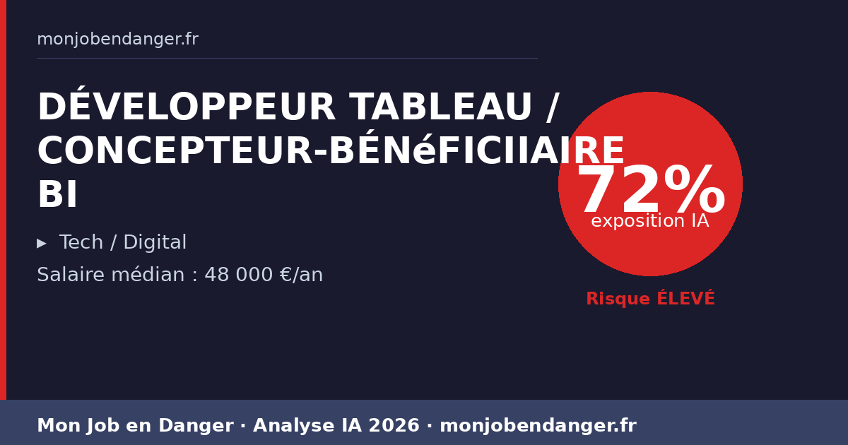 DÉVELOPPEUR TABLEAU / CONCEPTEUR-BÉNéFICIIAIRE BI et IA en 2026 : 72% d’exposition — ce que ça change pour vous