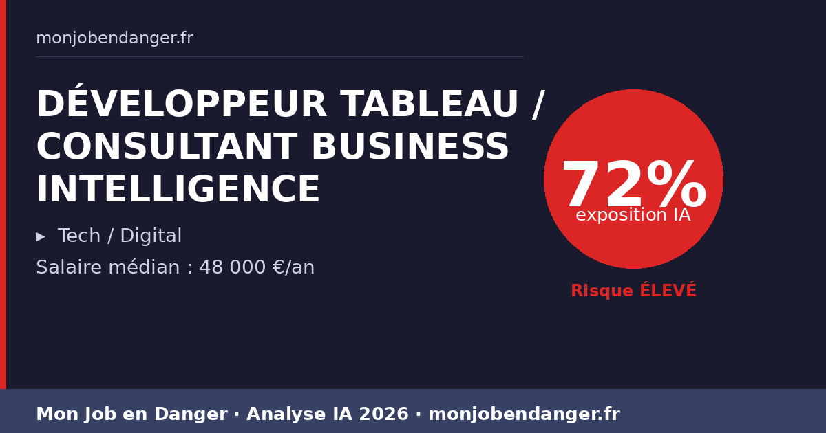DÉVELOPPEUR TABLEAU / CONSULTANT BUSINESS INTELLIGENCE et IA en 2026 : 72% d’exposition — ce que ça change pour vous