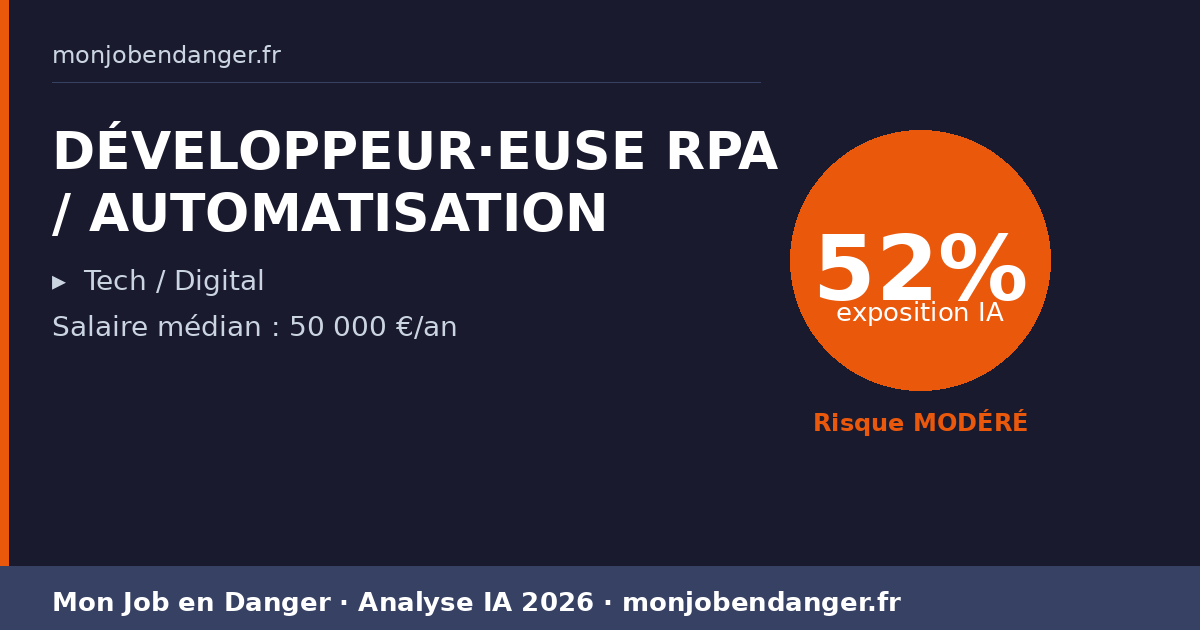 DÉVELOPPEUR·EUSE RPA / AUTOMATISATION et IA en 2026 : 52% d’exposition — ce que ça change pour vous
