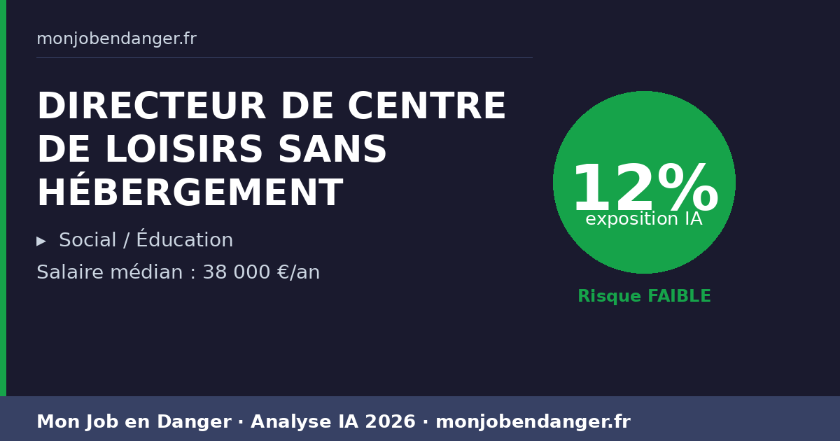 DIRECTEUR DE CENTRE DE LOISIRS SANS HÉBERGEMENT et IA en 2026 : 12% d’exposition — ce que ça change pour vous
