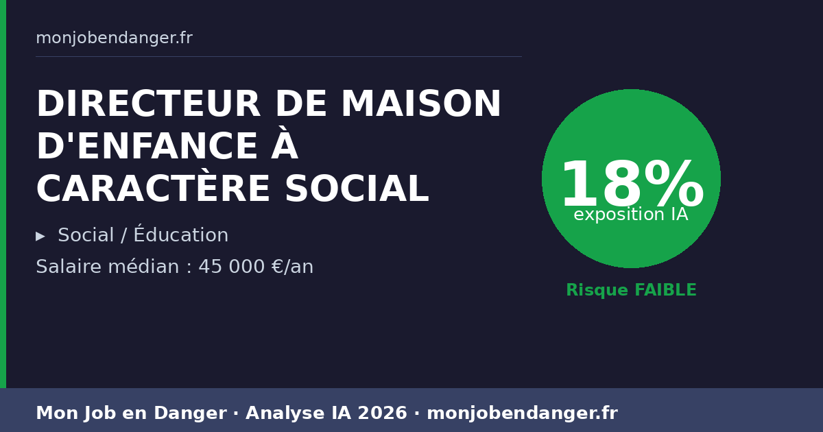DIRECTEUR DE MAISON D'ENFANCE À CARACTÈRE SOCIAL et IA en 2026 : 18% d’exposition — ce que ça change pour vous