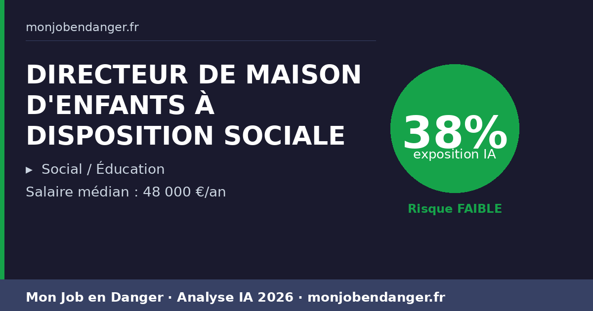 DIRECTEUR DE MAISON D'ENFANTS À DISPOSITION SOCIALE et IA en 2026 : 38% d’exposition — ce que ça change pour vous