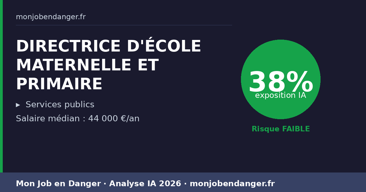 DIRECTRICE D'ÉCOLE MATERNELLE ET PRIMAIRE et IA en 2026 : 38% d’exposition — ce que ça change pour vous