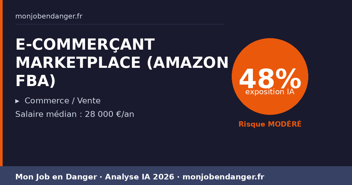 E-COMMERÇANT MARKETPLACE (AMAZON FBA) et IA en 2026 : 48% d’exposition — ce que ça change pour vous
