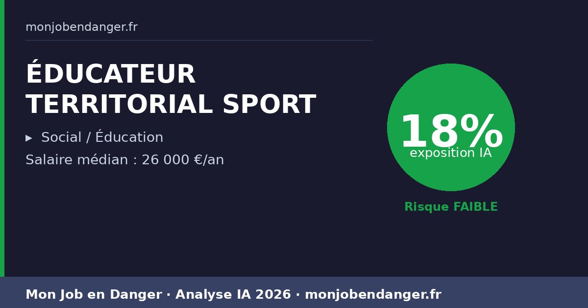 ÉDUCATEUR TERRITORIAL SPORT et IA en 2026 : 18% d’exposition — ce que ça change pour vous