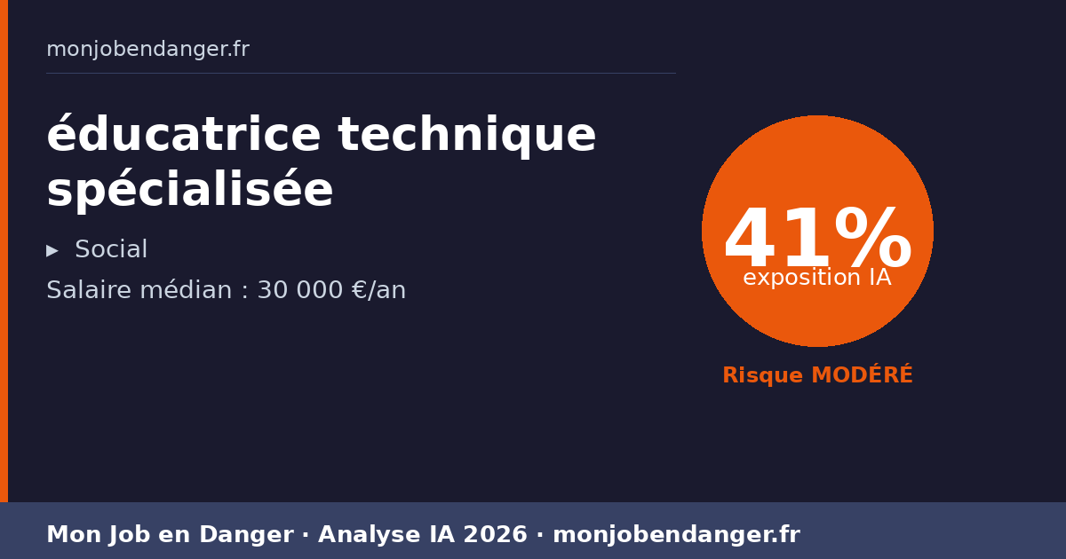 Métiers proches de éducatrice technique spécialisée — comparatif risque IA et salaire 2026