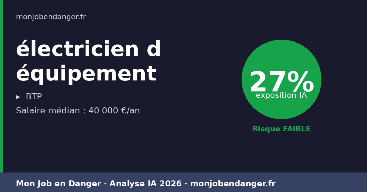 électricien d équipement et IA en 2026 : 27% d’exposition — ce que ça change pour vous