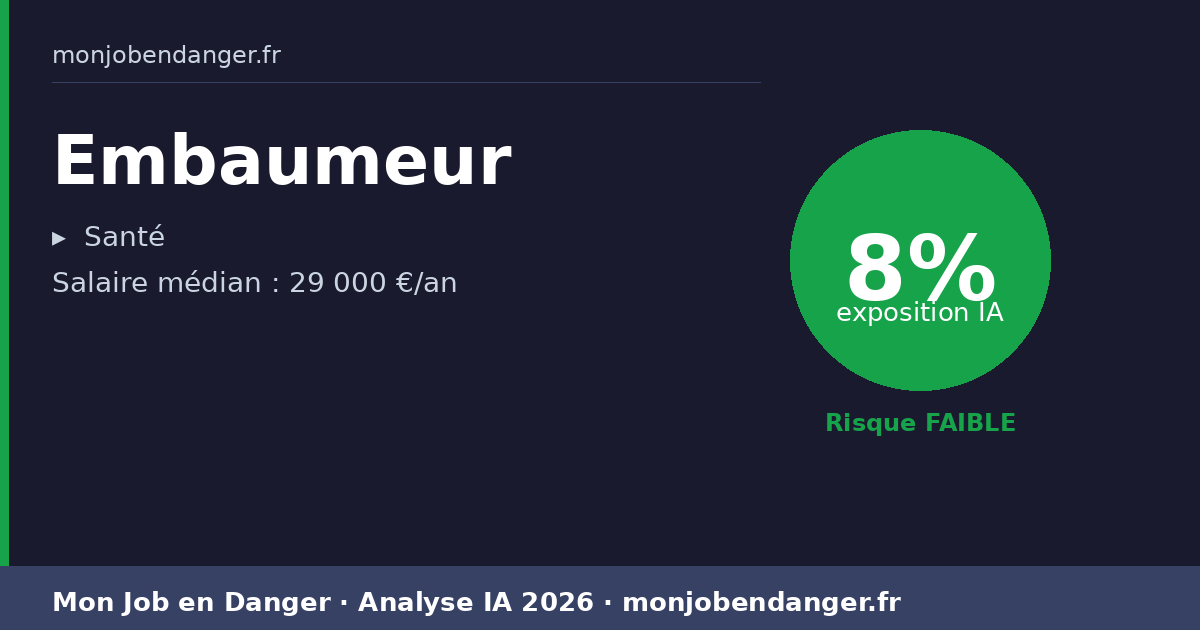 L'embaumement reste un métier à très faible exposition à l'IA car le travail manuel sur le corps et la dextérité requise sont impossible à reproduire. Seule la gestion administrative peut être optimisée par des outils numériques.