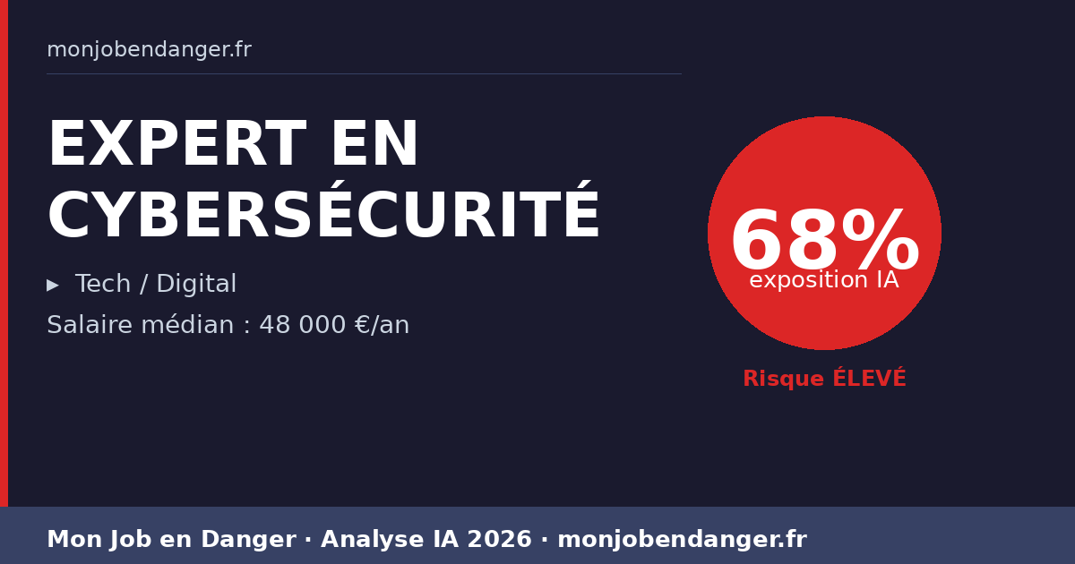 Salaire médian actuel : 48 000 €. Réaliste. Les EXPERT EN CYBERSÉCURITÉ qui adoptent les outils IA en premier gagnent en productivité et peuvent négocier en position de force.