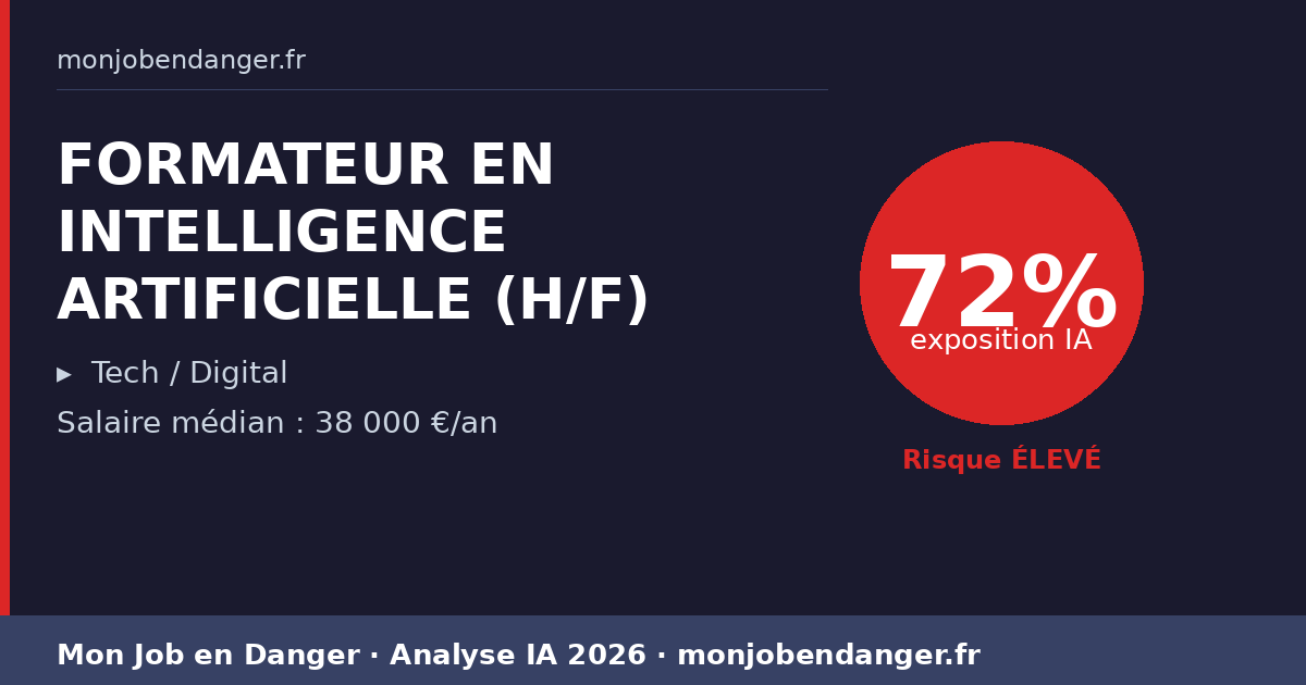 FORMATEUR EN INTELLIGENCE ARTIFICIELLE (H/F) et IA en 2026 : 72% d’exposition — ce que ça change pour vous