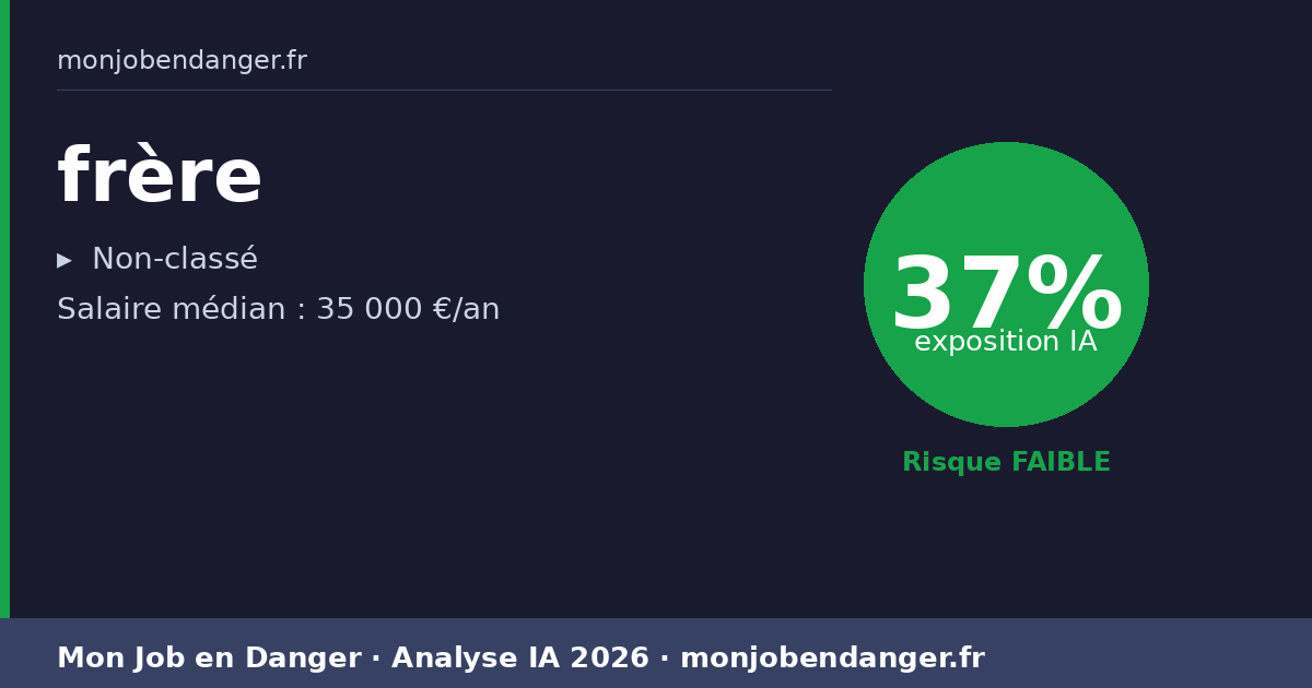 Avec seulement 37% d’exposition, les frères bénéficient d’une forte résilience face à l’IA. La dimension physique, relationnelle ou créative de ce métier le protège naturellement.
