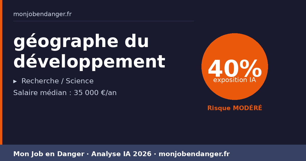 géographe du développement et IA en 2026 : 40% d’exposition — ce que ça change pour vous