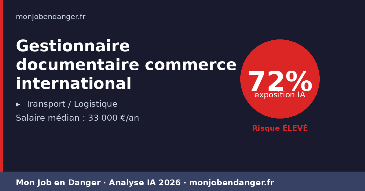 Gestionnaire documentaire commerce international et IA en 2026 : 72% d’exposition — ce que ça change pour vous
