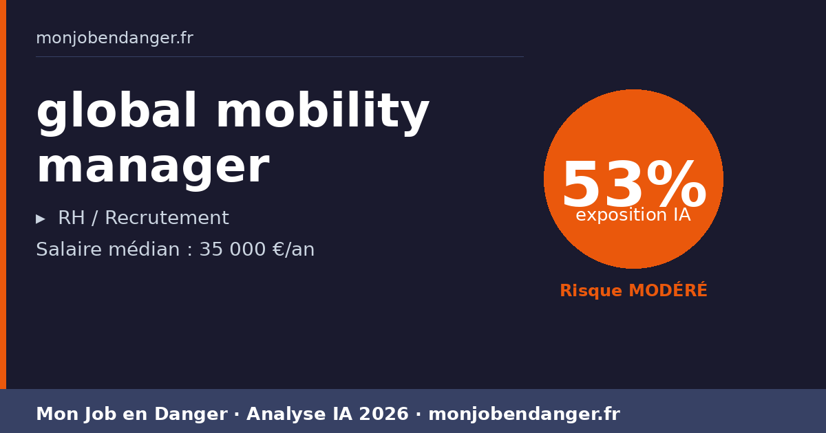 Salaire médian actuel : 35 000 €. Réaliste. Les global mobility manager qui adoptent les outils IA en premier gagnent en productivité et peuvent négocier en position de force.