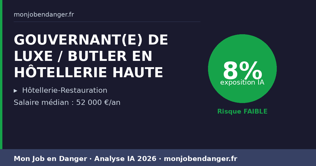 GOUVERNANT(E) DE LUXE / BUTLER EN HÔTELLERIE HAUTE GAMME et IA en 2026 : 8% d’exposition — ce que ça change pour vous