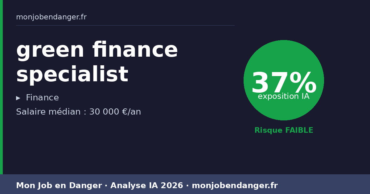 green finance specialist et IA en 2026 : 37% d’exposition — ce que ça change pour vous