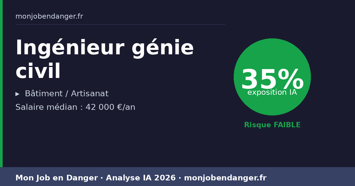 Ingénieur génie civil et IA en 2026 : 35% d’exposition — ce que ça change pour vous