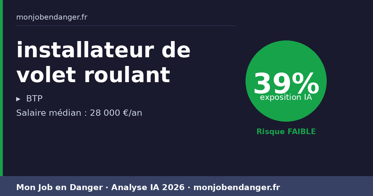 installateur de volet roulant et IA en 2026 : 39% d’exposition — ce que ça change pour vous
