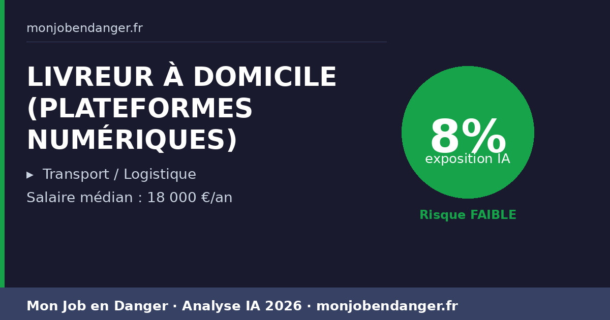 LIVREUR À DOMICILE (PLATEFORMES NUMÉRIQUES) et IA en 2026 : 8% d’exposition — ce que ça change pour vous