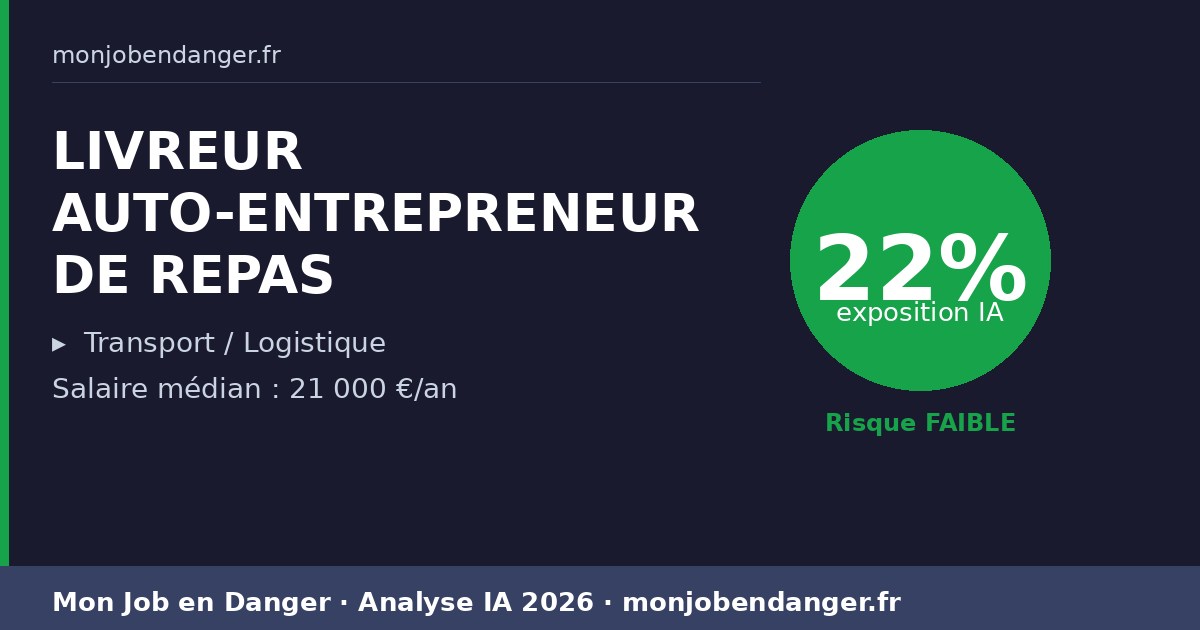 Où ce métier est exposé — et où il résiste : LIVREUR AUTO-ENTREPRENEUR DE REPAS ?