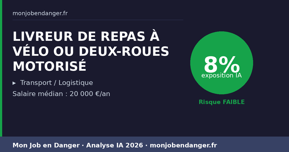 LIVREUR DE REPAS À VÉLO OU DEUX-ROUES MOTORISÉ et IA en 2026 : 8% d’exposition — ce que ça change pour vous