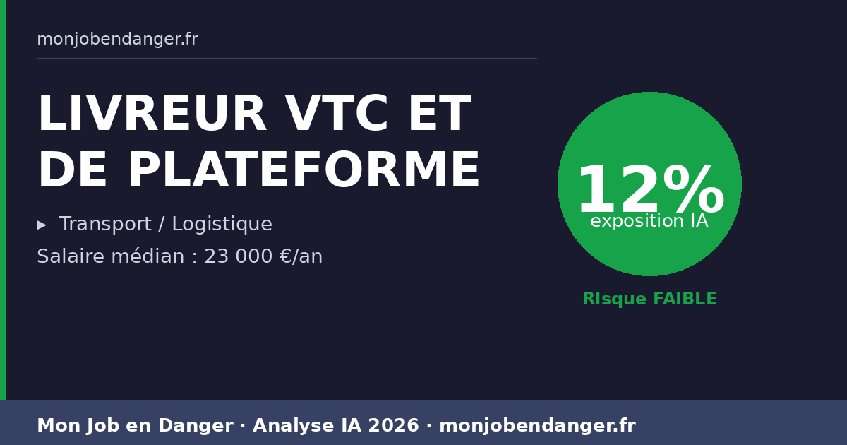 LIVREUR VTC ET DE PLATEFORME et IA en 2026 : 12% d’exposition — ce que ça change pour vous