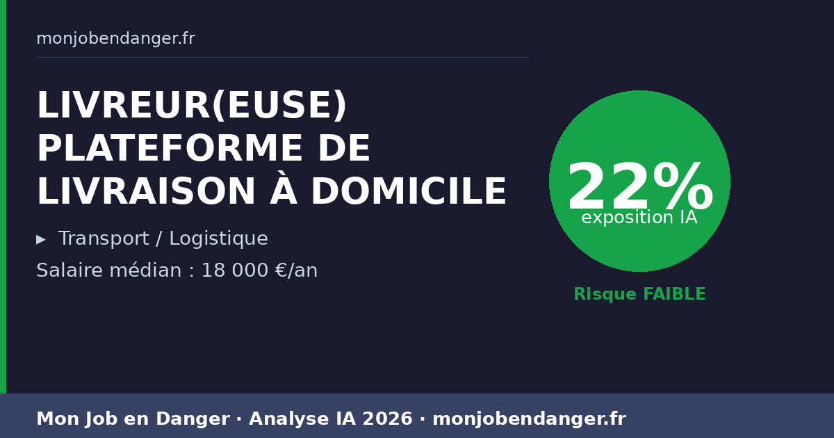 LIVREUR(EUSE) PLATEFORME DE LIVRAISON À DOMICILE et IA en 2026 : 22% d’exposition — ce que ça change pour vous