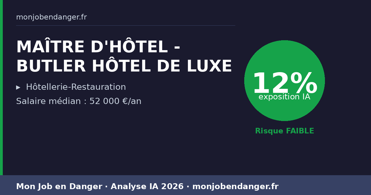 MAÎTRE D'HÔTEL - BUTLER HÔTEL DE LUXE et IA en 2026 : 12% d’exposition — ce que ça change pour vous