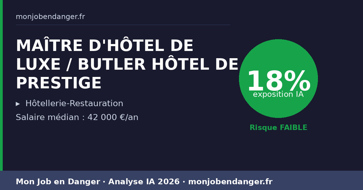 MAÎTRE D'HÔTEL DE LUXE / BUTLER HÔTEL DE PRESTIGE et IA en 2026 : 18% d’exposition — ce que ça change pour vous