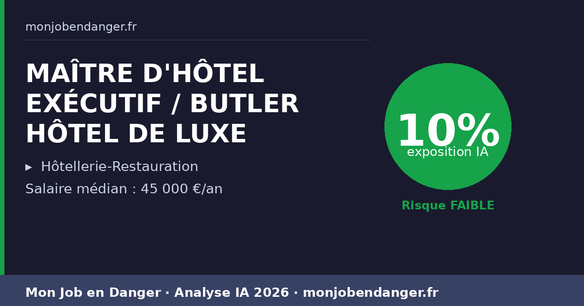 MAÎTRE D'HÔTEL EXÉCUTIF / BUTLER HÔTEL DE LUXE et IA en 2026 : 10% d’exposition — ce que ça change pour vous