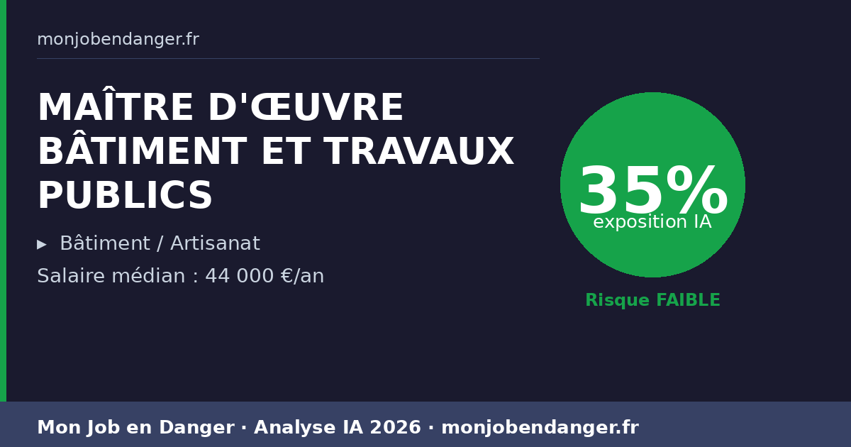 MAÎTRE D'ŒUVRE BÂTIMENT ET TRAVAUX PUBLICS et IA en 2026 : 35% d’exposition — ce que ça change pour vous